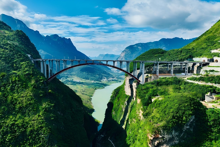 Como obra-chave da Rodovia Nayong–Qinglong, a ponte atravessa um desfiladeiro de 310 metros de profundidade, com vão principal de 270 metros e comprimento total de 511 metros. Sendo a primeira ponte do mundo com estrutura mista de arco de concreto sustentado por treliça superior em aço, esta obra representa a perfeita fusão entre engenharia moderna e a paisagem natural. Desde a abertura em setembro de 2025, a ponte abriu uma rota crucial para o transporte do sul da região de Qianxi até o litoral. A equipe de design da CCCC propôs este novo sistema estrutural, superando o limite de peso próprio das pontes de arco de concreto de grande vão em regiões montanhosas.