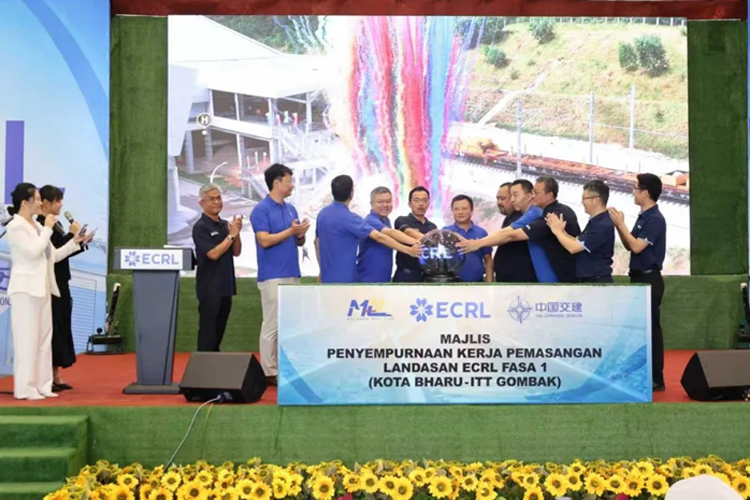 Recentemente, foi concluída a colocação de via em toda a extensão da Fase I do Projeto da Ligação Ferroviária da Costa Leste da Malásia (ECRL), construído pelo CCCC, num total de 519 quilómetros entre Kota Bharu e Gombak. O Diretor Executivo da Malaysia Rail Link Sdn Bhd (MRL), Datuk Seri Darwis, esteve presente na cerimónia e proferiu um discurso.